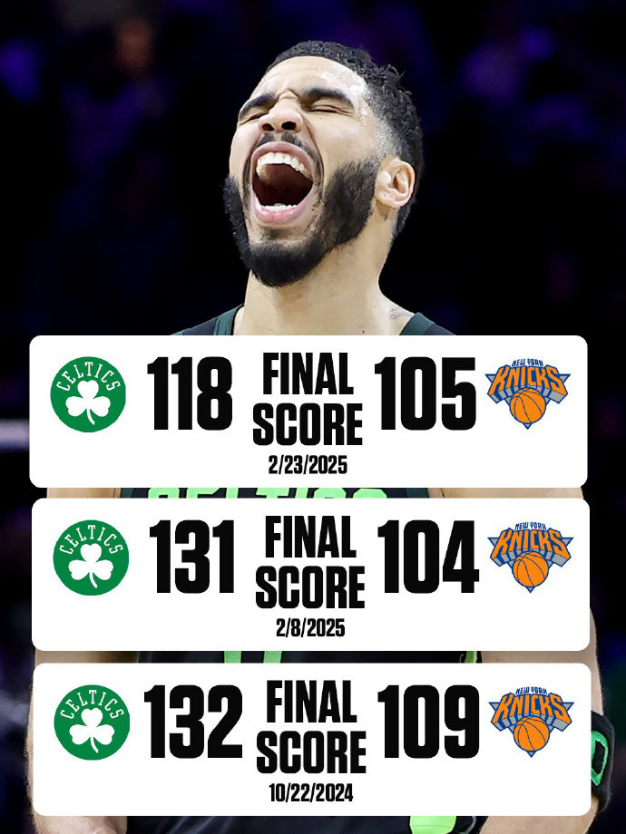 凯尔特人最近找回卫冕冠军的状态,不仅取得5连胜,最近10场比赛也取得9胜1负的战绩,目前以41胜16负继续排在东部第二。而尼克斯还是以37胜20负排在东部第三,但他们对阵联盟几支顶级强队都难求一胜,到了季后赛恐怕也走不了多远。